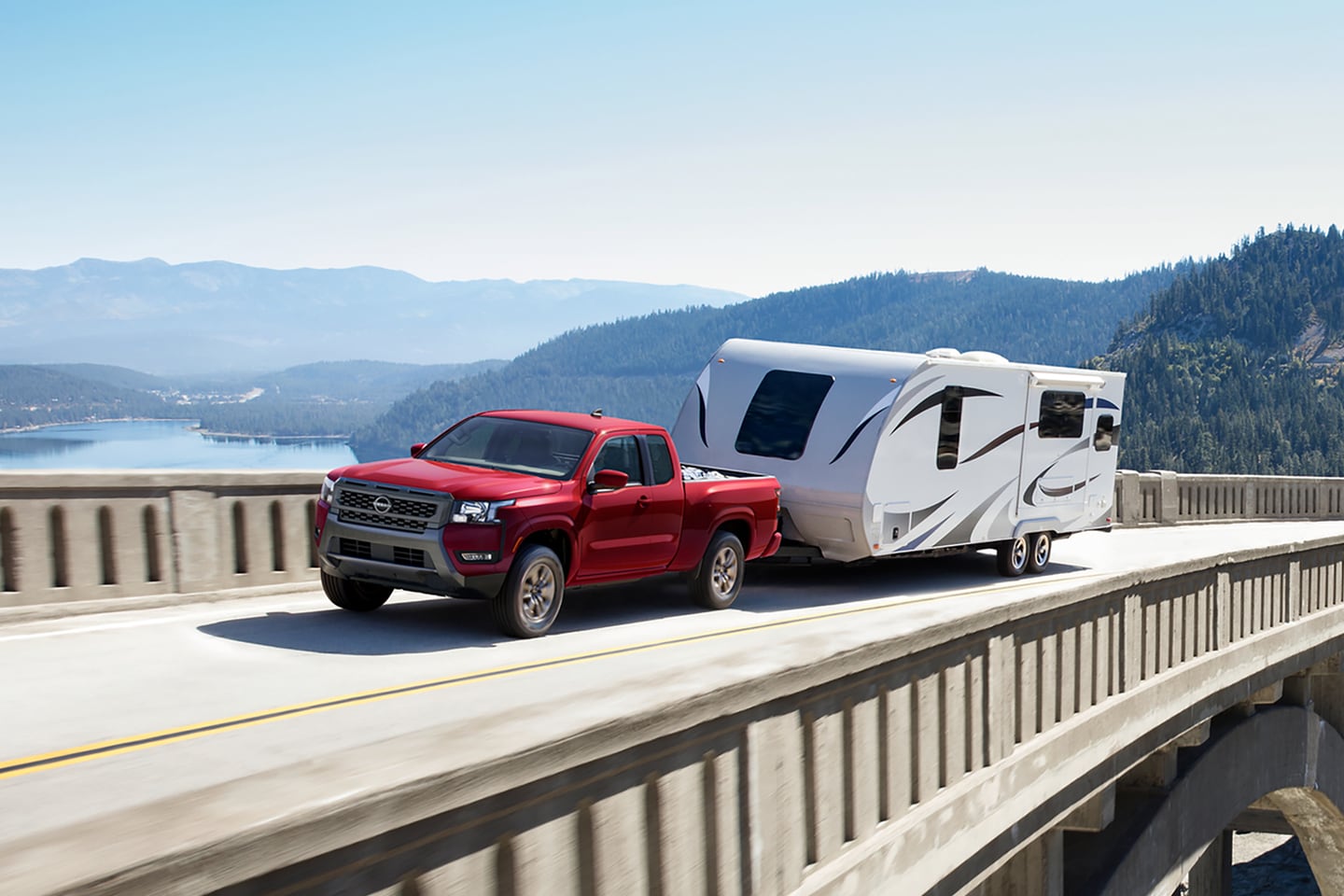 The Nissan Frontier delivers strong performance to tackle tough jobs and weekend adventures. Its 3.8-liter V6 produces 310 horsepower and 281 pound-feet of torque, providing substantial power for towing and hauling. When properly equipped, the Frontier offers a maximum towing capacity of 7,150 pounds, making it ideal for pulling boats, campers, and trailers. To get the process started, submit a financing application online and get credit approval in advance.