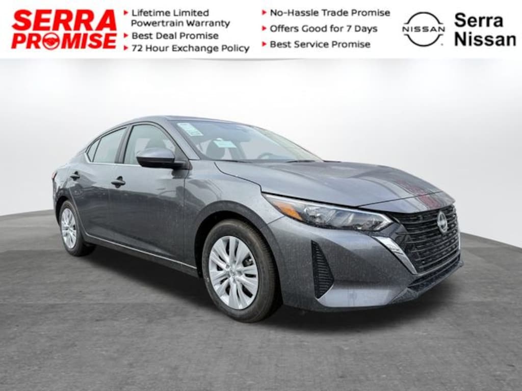 Gun Metallic 2025 Nissan Sentra S FWD CVT with Xtronic 2.0L I4 DOHC Bluetooth, Backup Camera, Blind Spot Warning, Rear Cross Traffic Alert, Lane Departure Warning, Forward Collision Warning, CVT with Xtronic, Charcoal Cloth.