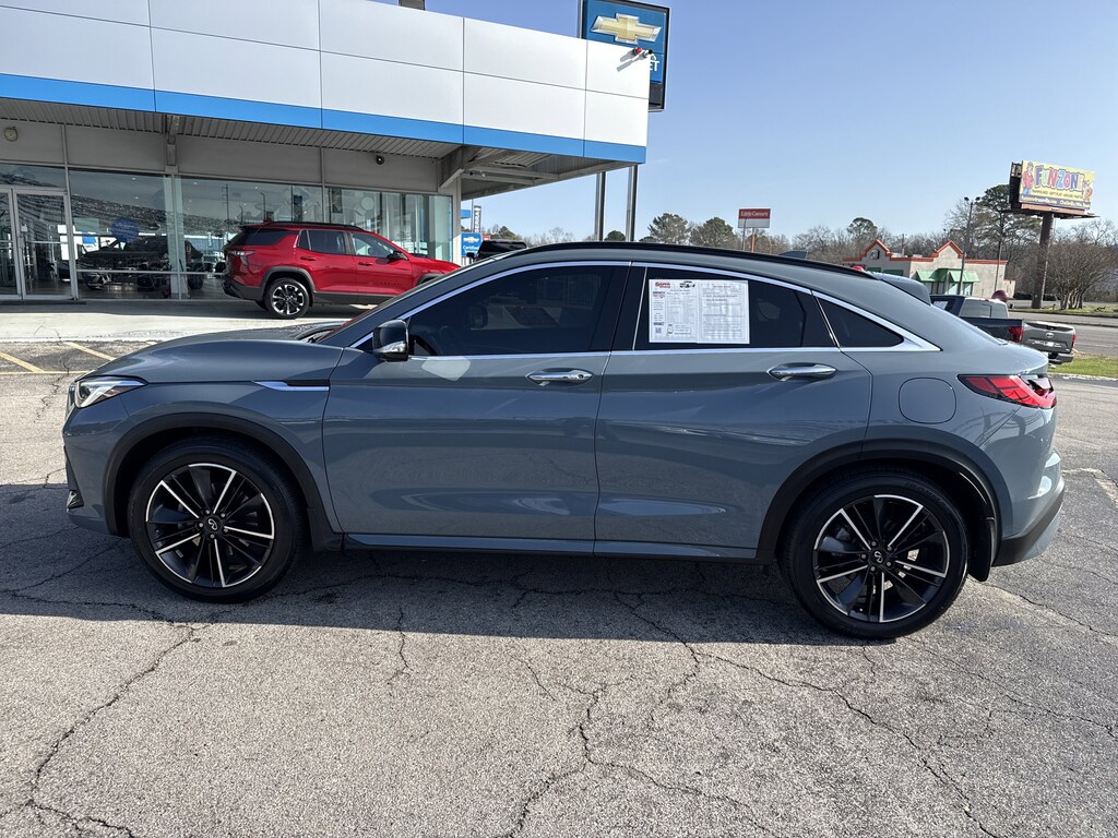 Slate Gray 2022 INFINITI QX55 SENSORY AWD CVT I4 16 Speakers, 4-Wheel Disc Brakes, 5.846 Axle Ratio, ABS brakes, Air Conditioning, Alloy wheels, AM/FM radio: SiriusXM, Auto High-beam Headlights, Auto tilt-away steering wheel, Auto-dimming Rear-View mirror, Automatic temperature control, Black Splash Guards (Set of 4), Brake assist, Bumpers: body-color, Carpeted Floor Mats, CD player, Climate Controlled Front Bucket Seats, Delay-off headlights, Driver door bin, Driver vanity mirror, Dual front impact airbags, Dual front side impact airbags, Electronic Stability Control, Emergency communication system: INFINITI InTouch, Four wheel independent suspension, Front anti-roll bar, Front Bucket Seats, Front Center Armrest, Front dual zone A/C, Front fog lights, Front reading lights, Garage door transmitter: HomeLink, Genuine wood door panel insert, Heads-Up Display, Heated door mirrors, Heated front seats, Heated steering wheel, Illuminated entry, Illuminated Kick Plates, Knee airbag, Leather Shift Knob, Lighting Package, Low tire pressure warning, Memory seat, Navigation system: INFINITI InTouch Navigation, Occupant sensing airbag, Outside temperature display, Overhead airbag, Overhead console, Panic alarm, Passenger door bin, Passenger vanity mirror, Power door mirrors, Power driver seat, Power Liftgate, Power moonroof, Power passenger seat, Power steering, Power windows, Premium Paint, Radio data system, Radio: Bose Performance Series Premium Audio, Rain sensing wipers, Rear air conditioning, Rear anti-roll bar, Rear reading lights, Rear seat center armrest, Rear window defroster, Rear window wiper, Remote keyless entry, Security system, Semi-Aniline Leather-Appointed Seat Trim, Speed control, Speed-sensing steering, Speed-Sensitive Wipers, Split folding rear seat, Spoiler, Steering wheel memory, Steering wheel mounted audio controls, Tachometer, Telescoping steering wheel, Tilt steering wheel, Traction control, Trip computer, Turn signal indicator mirrors, Variably intermittent wipers, Ventilated front seats, Welcome Lighting, Wheels: 20" x 8.5" Machine Finish Aluminum Alloy.Recent Arrival!22/28 City/Highway MPG All pre-owned prices plus tax, title, $799 Doc Fee & $2597 Protection Package. All internet prices require customer to finance with dealer captive lender. All pricing and details are believed to be accurate, but we do not warrant or guarantee such accuracy. While every reasonable effort is made to ensure the accuracy of this information, we are not responsible for any errors or omissions contained on these pages.Experience the Serra Promise - it's our promise to you; our valued customer. It's peace of mind that at any of our dealerships, you will find exactly what you need, from friends and neighbors you can trust for the road ahead! It's our promise to you: our valued customer. Our Family Serving Your Family Since 1981. Call for info at 205-588-4374 or visit us at www.serrachevy.com.