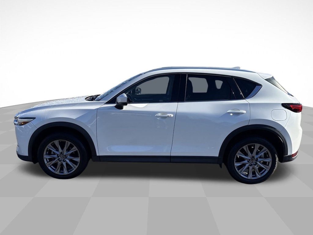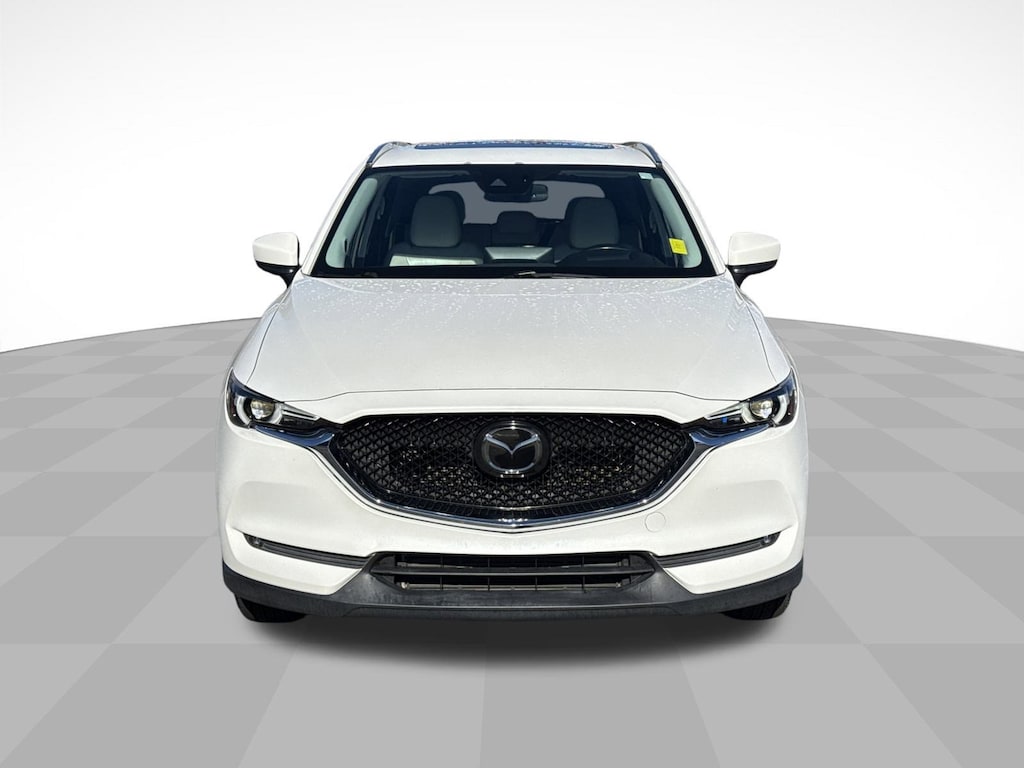 Snowflake White Pearl Mica 2021 Mazda CX-5 Grand Touring Reserve AWD 6-Speed Automatic 2.5L I4 10 Speakers, 4-Wheel Disc Brakes, 4.411 Axle Ratio, ABS brakes, Air Conditioning, Alloy wheels, AM/FM radio: SiriusXM, AppLink/Apple CarPlay and Android Auto, Auto High-beam Headlights, Auto-dimming Rear-View mirror, Automatic temperature control, Bose 10-Speaker Premium Audio Sound System, Brake assist, Bumpers: body-color, Delay-off headlights, Driver door bin, Driver vanity mirror, Dual front impact airbags, Dual front side impact airbags, Electronic Stability Control, Emergency communication system: MAZDA CONNECT, Exterior Parking Camera Rear, Four wheel independent suspension, Front anti-roll bar, Front Bucket Seats, Front Center Armrest, Front dual zone A/C, Front fog lights, Front reading lights, Fully automatic headlights, Garage door transmitter: HomeLink, Heads-Up Display, Heated door mirrors, Heated front seats, Heated rear seats, Heated steering wheel, Heated/Ventilated Front Bucket Seats, Illuminated entry, Leather Seat Trim, Leather Shift Knob, Low tire pressure warning, Memory seat, Occupant sensing airbag, Outside temperature display, Overhead airbag, Overhead console, Panic alarm, Passenger door bin, Passenger vanity mirror, Power door mirrors, Power driver seat, Power Liftgate, Power moonroof, Power passenger seat, Power steering, Power windows, Radio data system, Radio: AM/FM/HD Audio System, Rain sensing wipers, Rear anti-roll bar, Rear reading lights, Rear seat center armrest, Rear window defroster, Rear window wiper, Remote keyless entry, Roof Rack Side Rails, Snowflake White Pearl Mica Paint, Speed control, Speed-sensing steering, Split folding rear seat, Spoiler, Steering wheel mounted audio controls, Tachometer, Telescoping steering wheel, Tilt steering wheel, Traction control, Trip computer, Turn signal indicator mirrors, Variably intermittent wipers, Ventilated front seats, Wheels: 19" x 7J Aluminum Alloy.