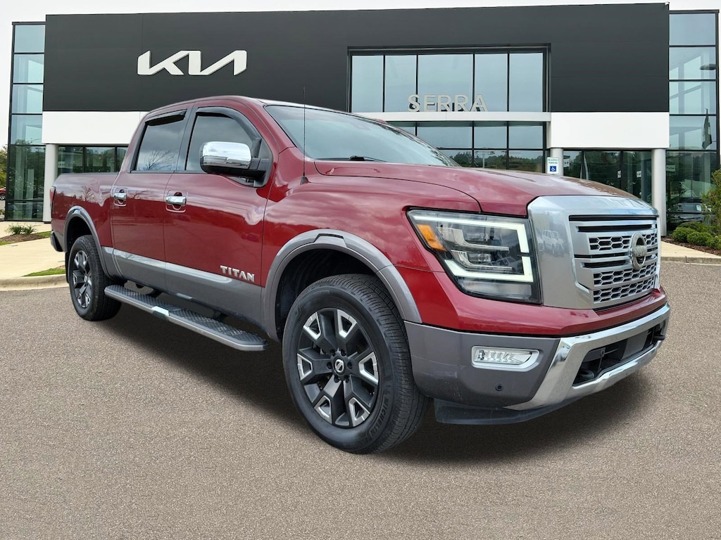 Cardinal Red Metallic 2021 Nissan Titan Platinum Reserve 4WD 9-Speed Automatic 5.6L V8 DOHC 32V 400hp 2021 Nissan Titan, ***Key Features***, Local Trade, Freshly Serviced, 1-Owner Autocheck, Clean History, Leather Seats, Cold A/C, Runs Great, Drives Great, Cooled Seats, Heated Seats, Recent Arrival, 4WD, All Season Floor Mats, Navigation system: NissanConnect Navigation, Off Road Protection Package.
