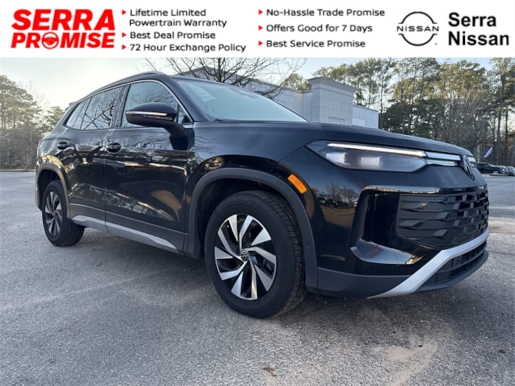 Come on down to Serra Nissan/VW to see this Deep Black Pearl 2025 Tiguan. 26/34 City/Highway MPG
